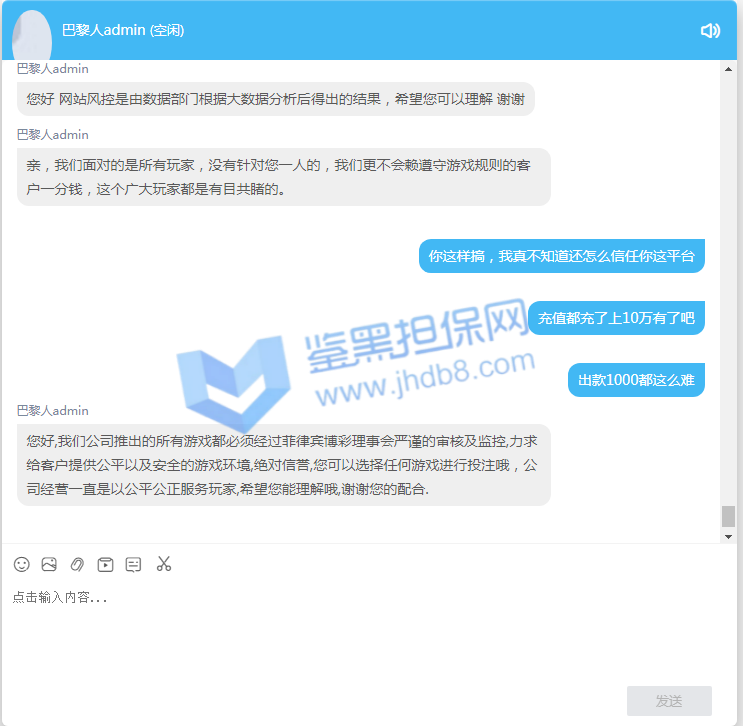 4.用户提交维权需为本人提交,若代替让人发布维权鉴黑担保网将拒绝受理;